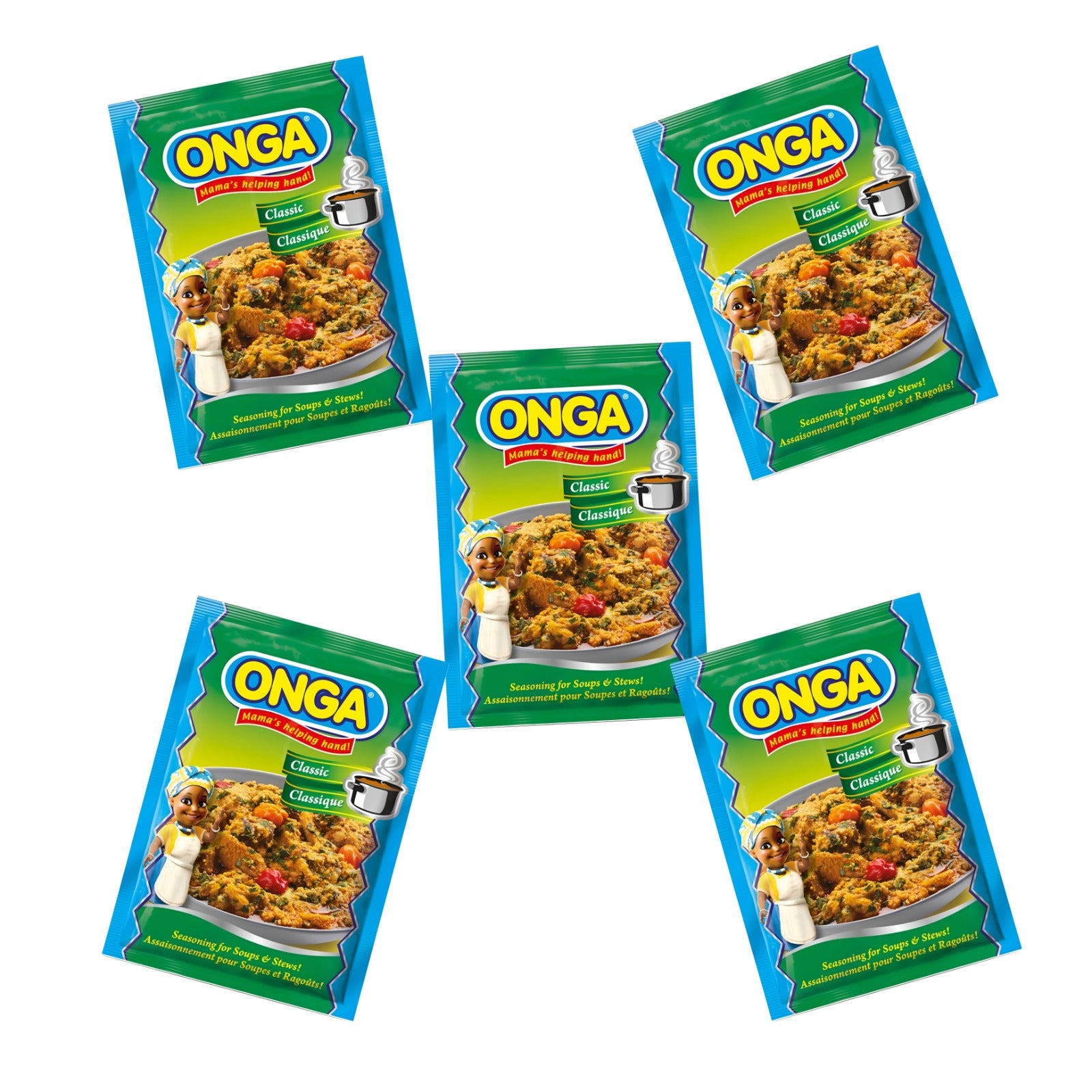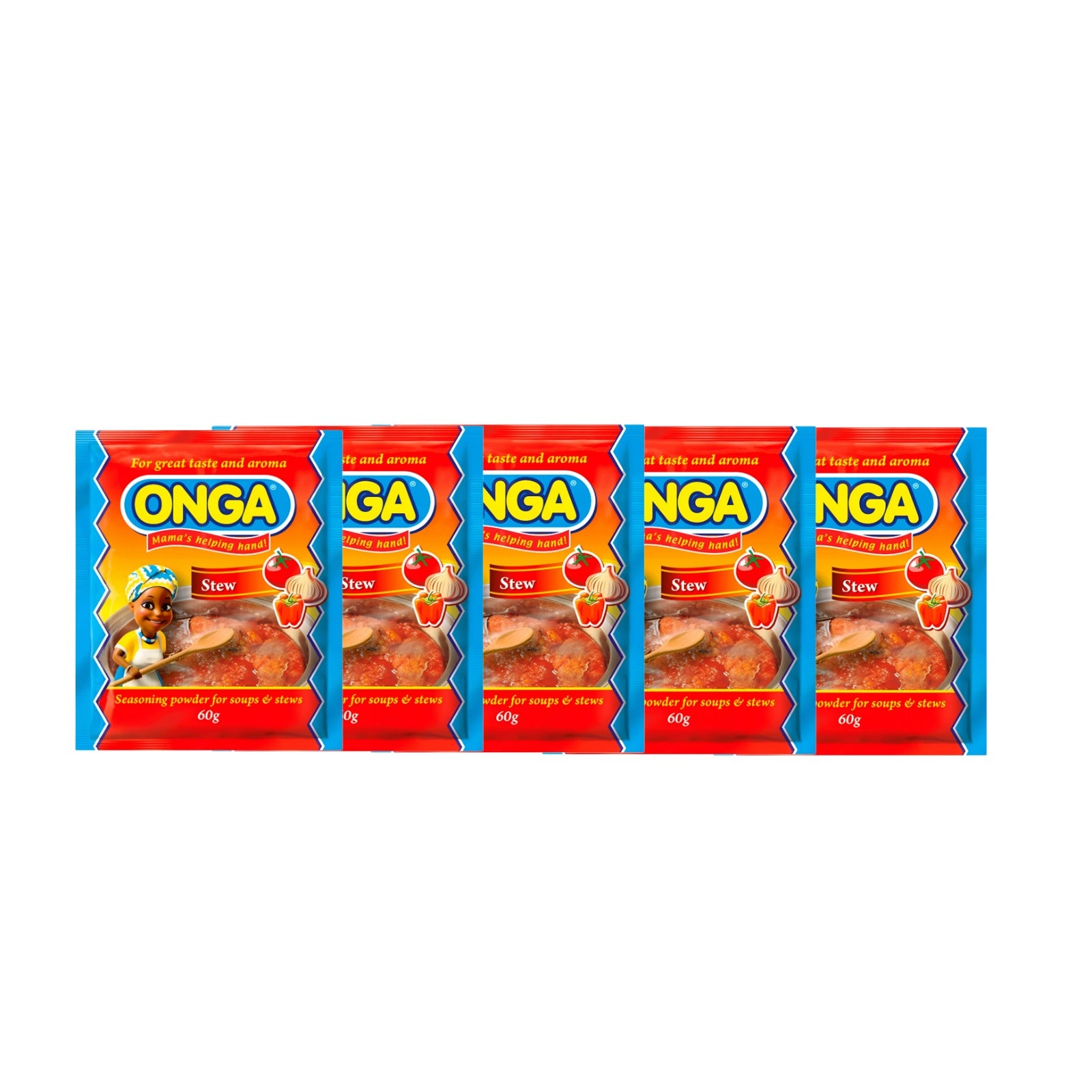 Onga Seasoning is a popular brand of powdered bouillon mix widely used in Nigerian cuisine. This particular product consists of 5 individual sachets, offering a convenient way to add a concentrated blend of savory flavors and aromas to soups, stews, and a variety of other dishes.